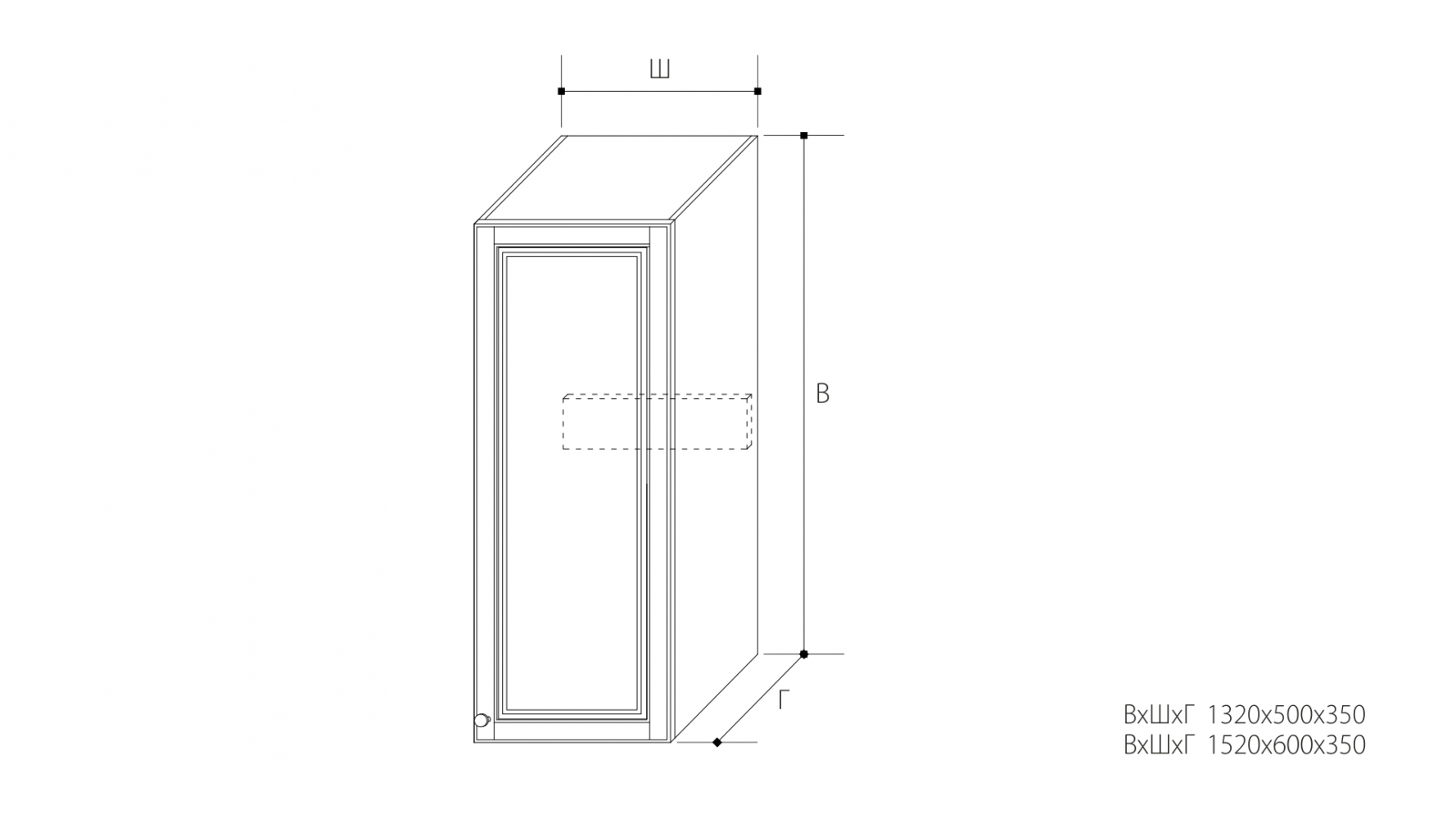 ВхШхГ; 1320х500х350 мм.